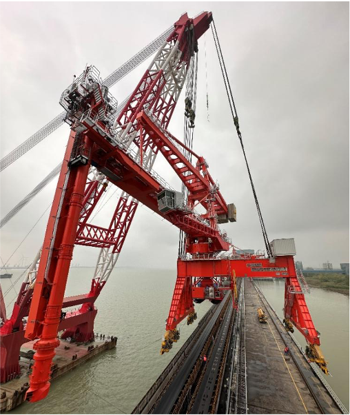 11月19日,經(jīng)過一天緊鑼密鼓的安排,由華新機電及旗下浙江天新智能研究院有限公司自主設(shè)計、制造的目前國內(nèi)最大出力無人值守螺旋式卸船機在國家能源集團泰州發(fā)電有限公司碼頭順利完成整體吊裝就位作業(yè)。該螺旋卸船機要求額定出力為2000 T/h,設(shè)計最大出力為2400T/h,這也是目前國產(chǎn)最大規(guī)格、控制方式最先進的螺旋式卸船設(shè)備。