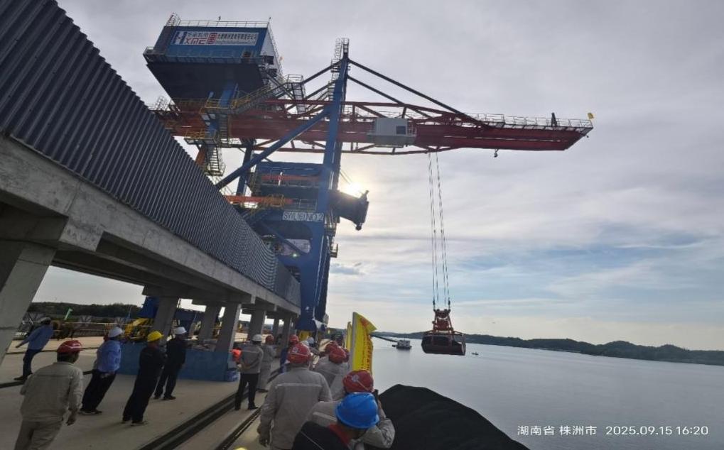 湘江之畔,華新機(jī)電大唐華銀株洲項目抓斗橋式卸船機(jī)近日完成首船接卸。這標(biāo)志著湖南省“十四五”重大能源工程的關(guān)鍵配套項目——大唐華銀株洲退城進(jìn)郊2×100萬千瓦擴(kuò)能升級改造項目燃料供應(yīng)保障的關(guān)鍵環(huán)節(jié)已經(jīng)打通,項目進(jìn)度取得重大進(jìn)展,為電廠后續(xù)投產(chǎn)與高效運營奠定了堅實的基石。