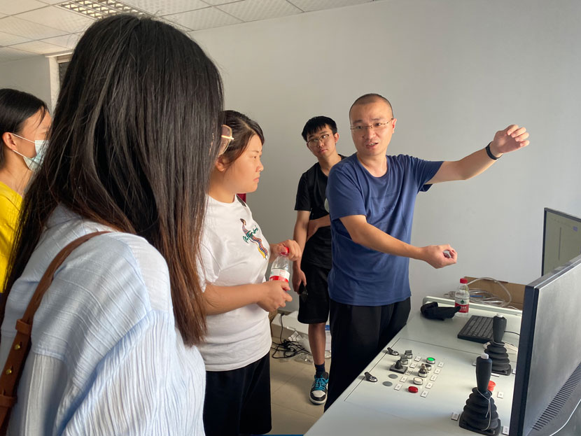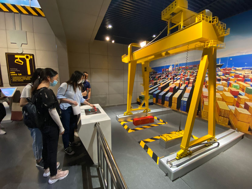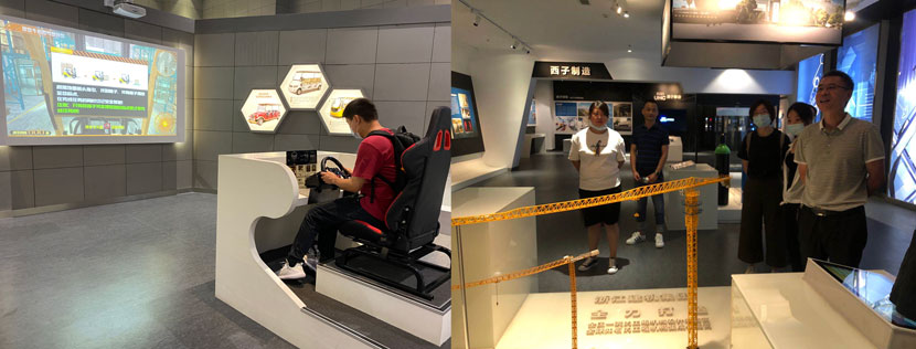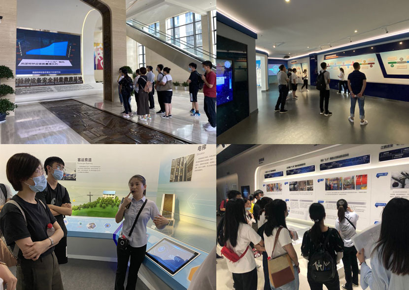參觀特檢院展館,認(rèn)真聆聽講解員介紹起重機(jī)行業(yè)歷史,操作館內(nèi)模型。