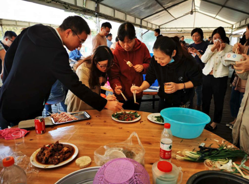 不一會(huì)兒,在團(tuán)隊(duì)協(xié)作下,燒烤和大鍋菜的香味陣陣撲鼻而來,你一塊我一塊,大家的午餐就這樣開始。大快朵頤之后,無論是新來的小伙伴還是老員工,已經(jīng)打成一片,同事間的情誼在歡聲笑語和縷縷炊煙中逐漸升華。