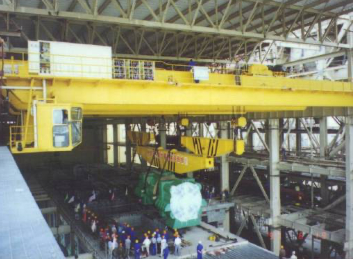 公司設(shè)計制造的所有橋機(jī)及門機(jī)的起升小車系消化吸收國外先進(jìn)技術(shù),結(jié)合我國當(dāng)時的配套水平,綜合研究院多年的技術(shù)研制經(jīng)驗,遵照GB/T3811-2008《起重機(jī)設(shè)計規(guī)范》、GB/T14405-2011《通用橋式起重機(jī)》等標(biāo)準(zhǔn),同時參照國外有關(guān)起重機(jī)標(biāo)準(zhǔn)及歐洲搬運協(xié)會主流橋式起重機(jī)機(jī)型研制而成,節(jié)能減排,經(jīng)濟(jì)環(huán)保,特別適合地下廠房、新型工廠及大噸位貴重物件的吊裝、搬運就位工作。公司首臺臺橋機(jī)為1990年研發(fā)、1992年投入生產(chǎn)的寧波北侖電廠80/20t橋式起重機(jī),公司首臺臺門機(jī)為1994年向富春江發(fā)電廠提供的2×20t尾水門機(jī)。近三十年的發(fā)展,已向國內(nèi)外眾多優(yōu)質(zhì)客戶提供千余臺橋機(jī)和門機(jī)設(shè)備,是目前業(yè)內(nèi)最先進(jìn)、最成熟的低凈空小車結(jié)構(gòu)。目前制造過的單小車橋機(jī)最大額定起重量為800t,雙小車橋機(jī)最大額定起重量為500t+500t,具備1500噸橋機(jī)的設(shè)計制造能力;制造過的門式起重機(jī)最大額定起重量為900t的造船龍門吊。